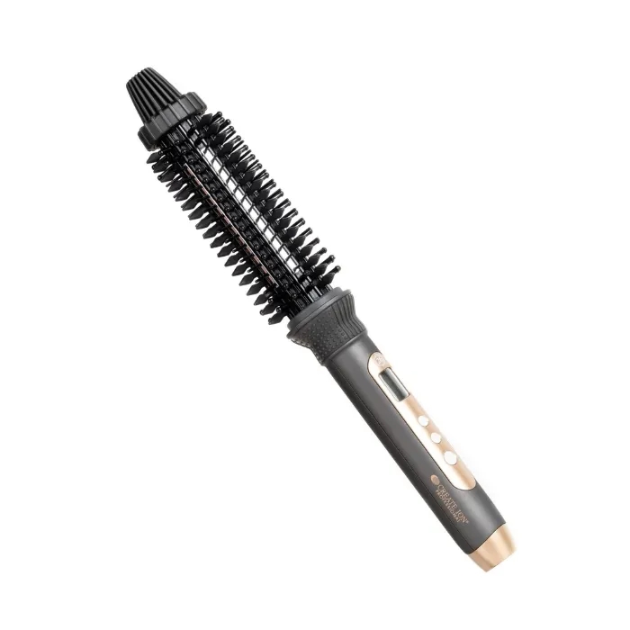 แปรงม้วนผมไวรัลฝั่งตะวันตกด้วยหัวแปรงขนาดใหญ่พอดี เหมาะสำหรับใครที่อยากได้ลอนปลายคลายๆ ดูธรรมชาติแบบไม่ต้องใช้แกนม้วน แถมยังเพิ่มวอลูมช่วงโคนได้ดีเยี่ยม ความร้อนกระจายสม่ำเสมอช่วยลดผมชี้ฟู ใช้งานง่ายมาก ตัวด้ามเบา ถือถนัดมือ เหมาะกับมือใหม่หัดลองใช้