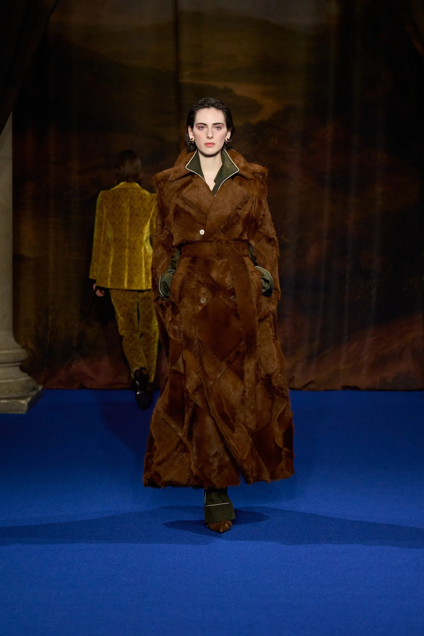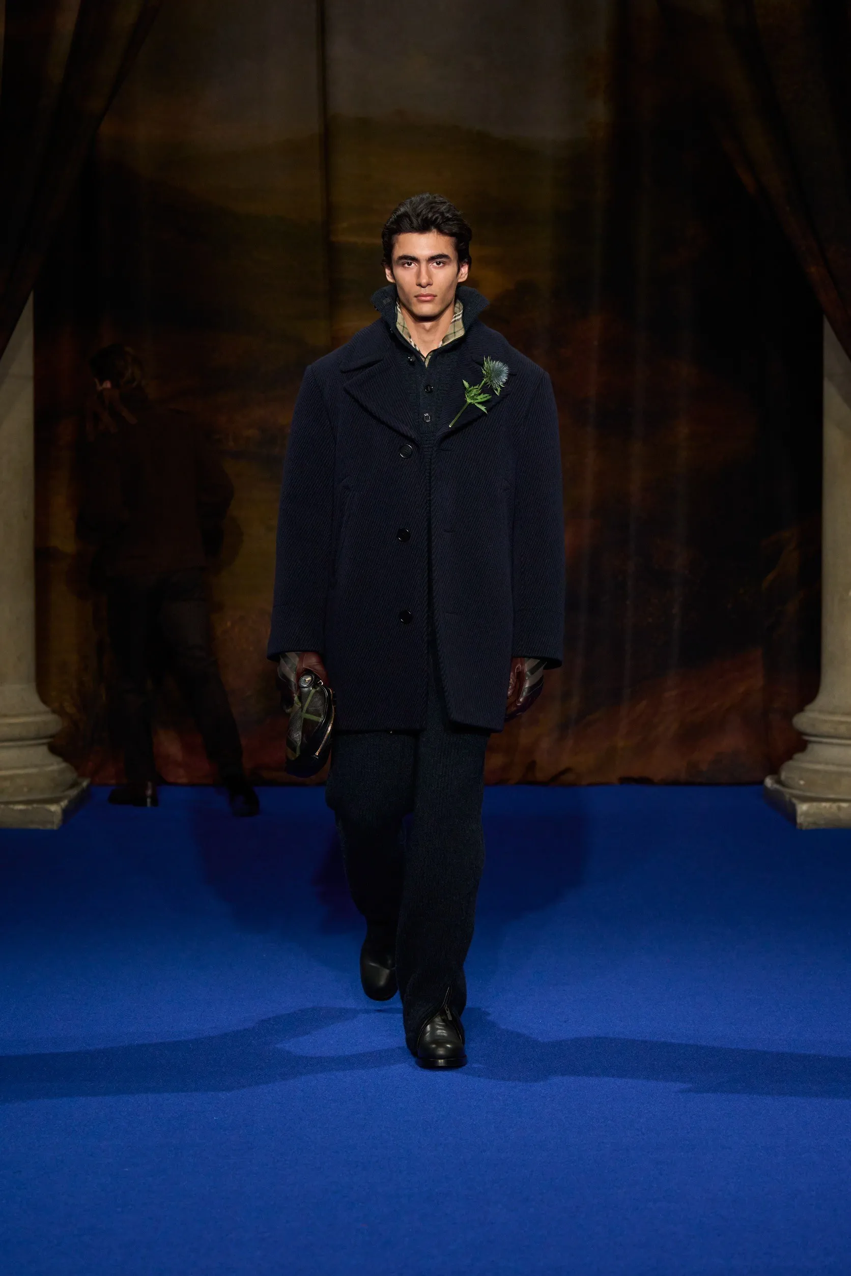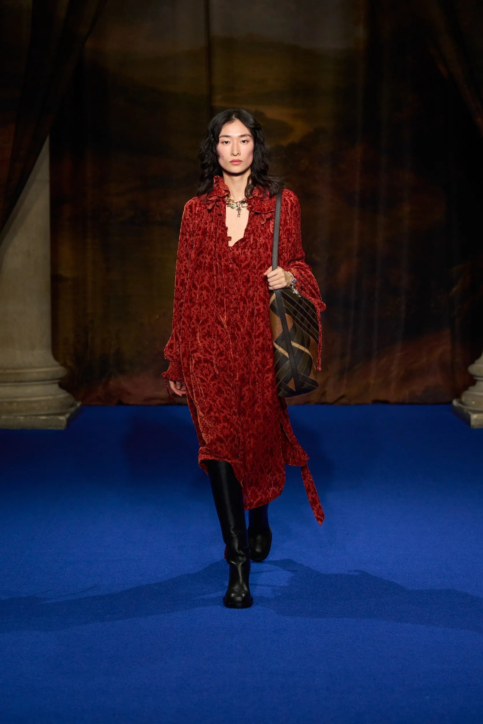 โว้กรวมทุกลุคจากโชว์ Burberry คอลเล็กชั่นฤดูใบไม้ร่วง/ฤดูหนาว 2025 โดย Daniel Lee ที่หยิบยกกลิ่นอายการท่องโลกของอัศวินเกราะเหล็กสัญลักษณ์แห่งห้องเสื้อดังจากอังกฤษมาเป็นเส้นเรื่องในการนำเสนอเสื้อผ้าที่เปี่ยมด้วยอัตลักษณ์และการรื้อสร้างใหม่อย่างมีนัยสำคัญ รูปแบบแบบของเสื้อผ้าฤดูหนาวในคอลเล็กชั่นนี้ตั้งอยู่บนรากฐานของความคลาสสิกในแบบฉบับของแบรนด์ ไม่ว่าจะเป็นเสื้อโค้ตกระดุมสองแถว ลายตาราง หรือแม้แต่ลายควิลต์และการเลือกใช้วัสดุคุณภาพสูง เพิ่มเติมคือการปรับเปลี่ยนซิลูเอตและเสริมโครงสร้างรายละเอียดให้น่าตื่นเต้นมากขึ้น การปรับแต่งด้วยลวดลาย สีสัน เรื่อยไปจนถึงวิธีการสไตลิ่ง นอกจากนี้ยังเลือกฟรินจ์ เครื่องหนัง และผ้ากำมะหยี่มาเป็นตัวเลือกสำคัญเพื่อสร้างความโดดเด่นในโชว์อีกด้วย กระเป๋าค่อนไปทางไซซ์เล็ก เน้นทรงหูจับด้านบน สอดแทรกด้วยฟังก์ชั่นสะพายไหล่ โดยเสื้อผ้าและกระเป๋าหลายชิ้นสะท้อนภาพการสวมใส่ตอบโจทย์สไตล์ยูนิเซ็กซ์ได้อย่างน่าสนใจอีกด้วย ชมลุคทั้งหมดที่ด้านล่างนี้เลย