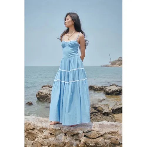 Heartweavers ส่ง Tide Maxi Dress มาสะกดใจสาวซัมเมอร์ ด้วยเดรสยาวทรงแม็กซี่สไตล์โบฮีเมียนเล็กๆ สีฟ้าสดใสและสีครีใเอิร์ธโทนอบอุ่น ใส่แล้วเหมือนอยู่บนชายหาดบาหลี เติมลุคด้วยหมวกปีกกว้างหรือรองเท้ารัดส้นยิ่งเพิ่มความโดดเด่นให้ลุคคุณมีเสน่ห์น่ามอง